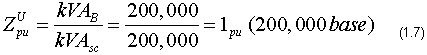 Since the utility has an impedance, it will limit the fault current flow and must, therefore, be added to the transformer impedance to calculate the actual fault current. First, the utility per unit impedance needs to be calculated. To do this, we assume that the utility base kVA is 200,000. From our per unit formulas this means that: